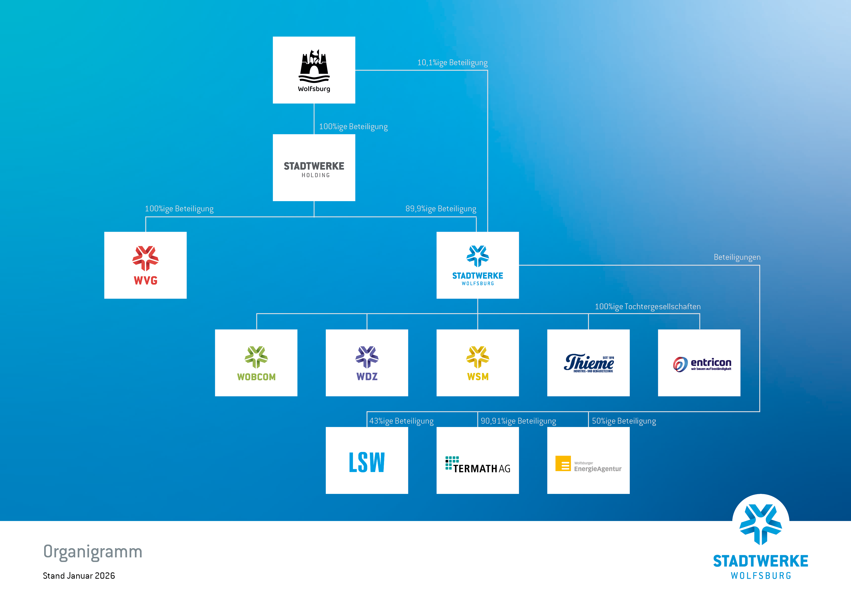 In einer lebenswerten Stadt der Zukunft begreifen wir Gebäude als Teil des Ökosystems Stadt. Dafür leisten wir mit unseren Töchtern entricon GmbH, Thieme GmbH & Co. KG, Wolfsburger Schulmodernisierungsgesellschaft mbH und Termath AG einen wichtigen Beitrag zur Bereitstellung einer nachhaltigen, energieeffizienten, sicheren und komfortablen Gebäudeinfrastruktur in Wolfsburg. Durch unsere Beteiligung an der LSW Holding GmbH & Co. KG umfassen unsere Leistungen außerdem die regionale Versorgung mit Strom, Erdgas, Fernwärme und Trinkwasser sowie den Betrieb von Energie- und Wassernetzen.